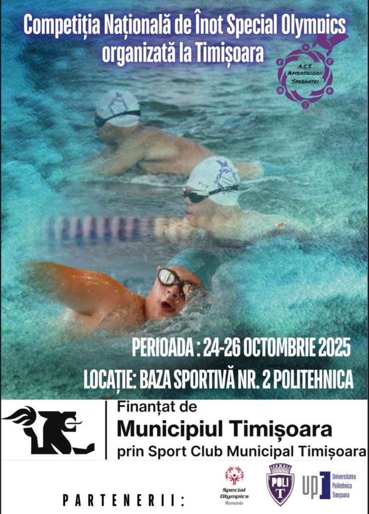 Timișoara a găzduit, între 24-26 octombrie, Competiția Națională de Înot Special Olympics, un eveniment dedicat sportivilor cu dizabilități intelectuale din întreaga țară. Evenimentul a fost finanțat de Municipiul Timișoara, prin SCM Timișoara, iar printre parteneri a fost Universitatea Politehnica Timișoara. Competiția s-a desfășurat la Baza Politehnica nr. 2.