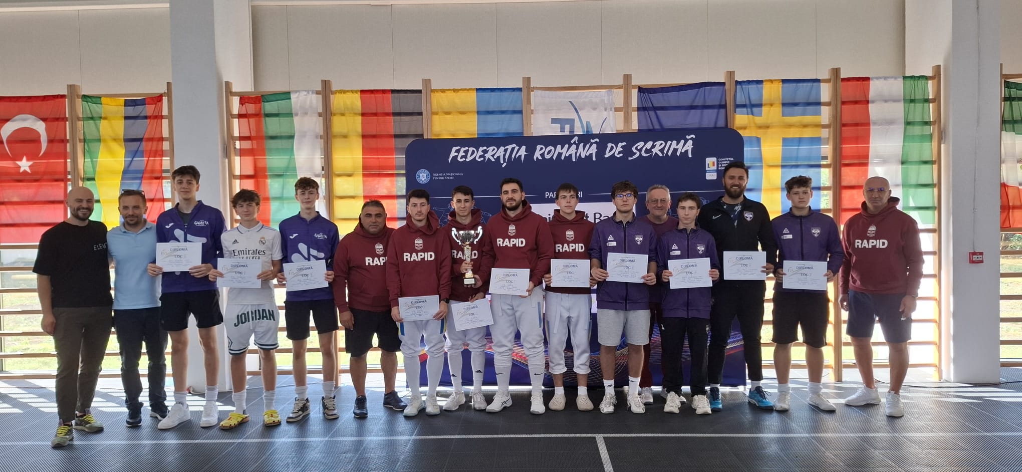 În proba pe echipe, masculin, Politehnica a câștigat medalia de bronz (foto). În semifinale, alb-violeții au cedat cu Rapid București 1. Echipa timișoreană a fost formată din Mark Bielii-Șemardin, Benjamin Bodo, Felix Dogariu și Mihnea Robănescu. În finala pentru locul 3, Poli a dispus cu 45-29 de Steaua București. Aurul a fost câștigat de Rapid București 1, după o finală cu ACS Floreta Timișoara 1.